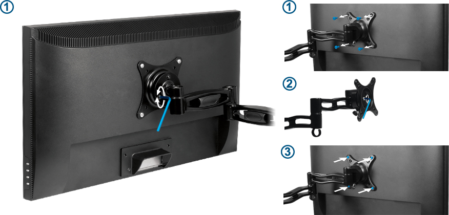 Avec la tête de montage W1B, serrez ou desserrez le pivot selon vos besoins en quelques secondes seulement. Pas besoin de démonter le moniteur.