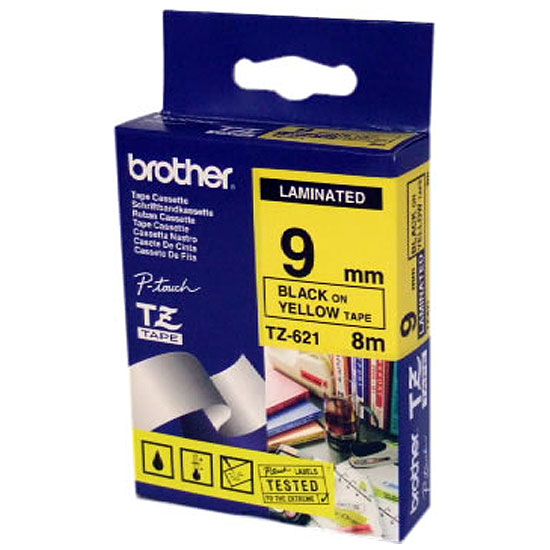 Brother Tz621 - Ruban laminé Standard Noir sur Fond Jaune 9mm