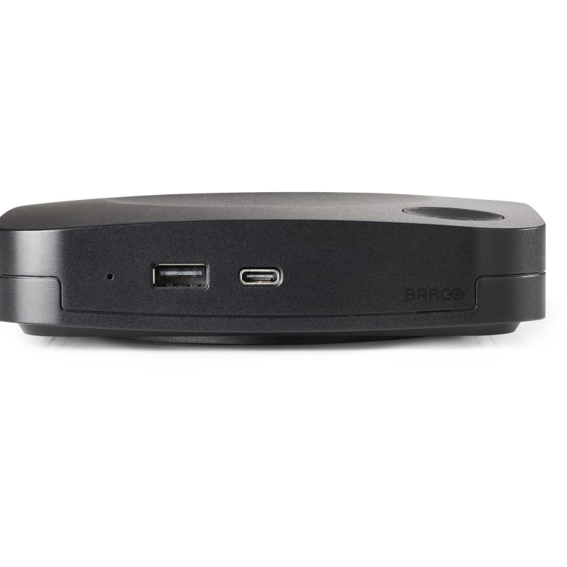 Fabriqué avec de nouveaux composants internes, ce modèle 2ème génération est doté d'un nouveau bouton de génération Gen 4.1 avec connexion USB-C conçu pour simplifier l'installation et la connectivité. Vous pouvez maintenant connecter le système de présentation sans fil Barco via une alimentation ou un câble USB-C. La présentation vidéo se fera via HDMI ou USB-C DisplayPort.