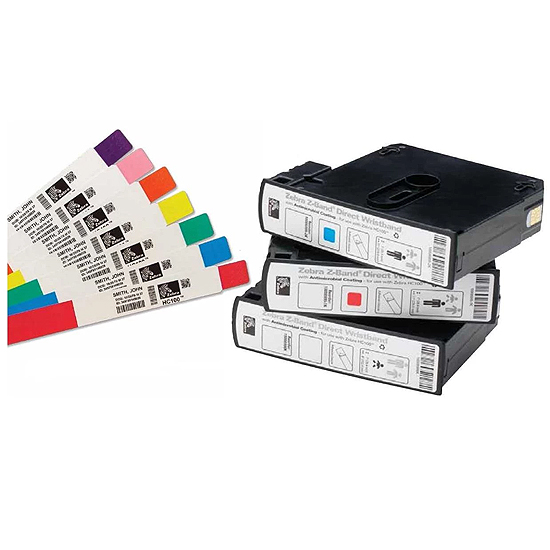 Kit de cartouche de bracelet Zebra Z-Band Direct - Bracelets, Zebra, rouge Cartouche de bracelet en polypropylène HC100 Z-Band Direct, thermique directe, 1" X 11", perforé, 200 bracelets par cartouche, 6 cartouches par caisse, prix par caisse