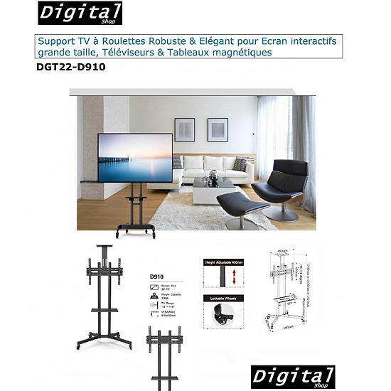 Digital DGT22-D910 - Meuble Support TV Robuste avec Roulettes Taille Ecran de 32 à 70 pouces