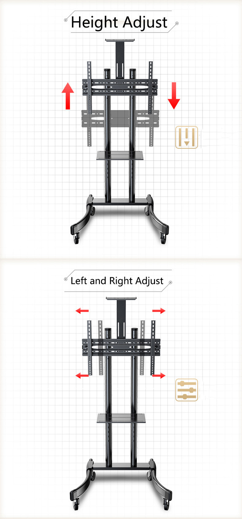 - Le chariot de télévision roulant convient à la plupart des marques de télévision populaires sur le marché avec une diagonale de 32 à 75 pouces