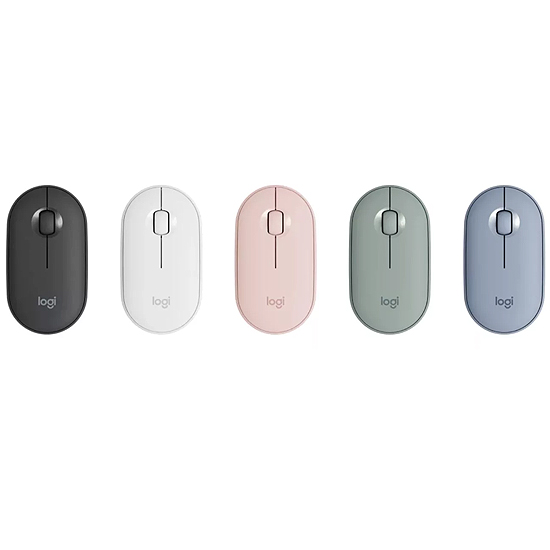Choisissez votre souris Logitech Pebble M350 en Off White, Graphite, Vert Eucalyptus, bleu ou Rose Pink pour l'assortir au reste de vos accessoires.