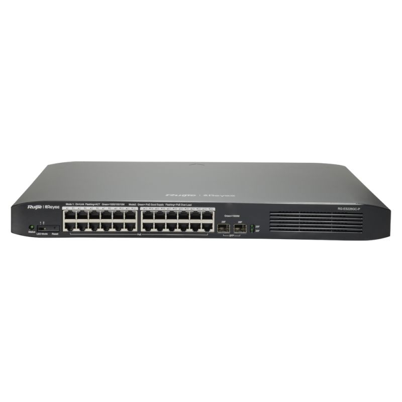 Ruijie RG-ES226GC-P - 26 Ports Gigabit Smart POE Switch 24 Gigabit RJ45 Ports 16 POE + 2 Ports SFP Administrable L2