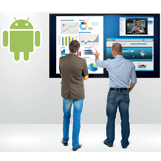 Système d'exploitation Android, hauts parleurs inégrés, logiciel de présentation interactif