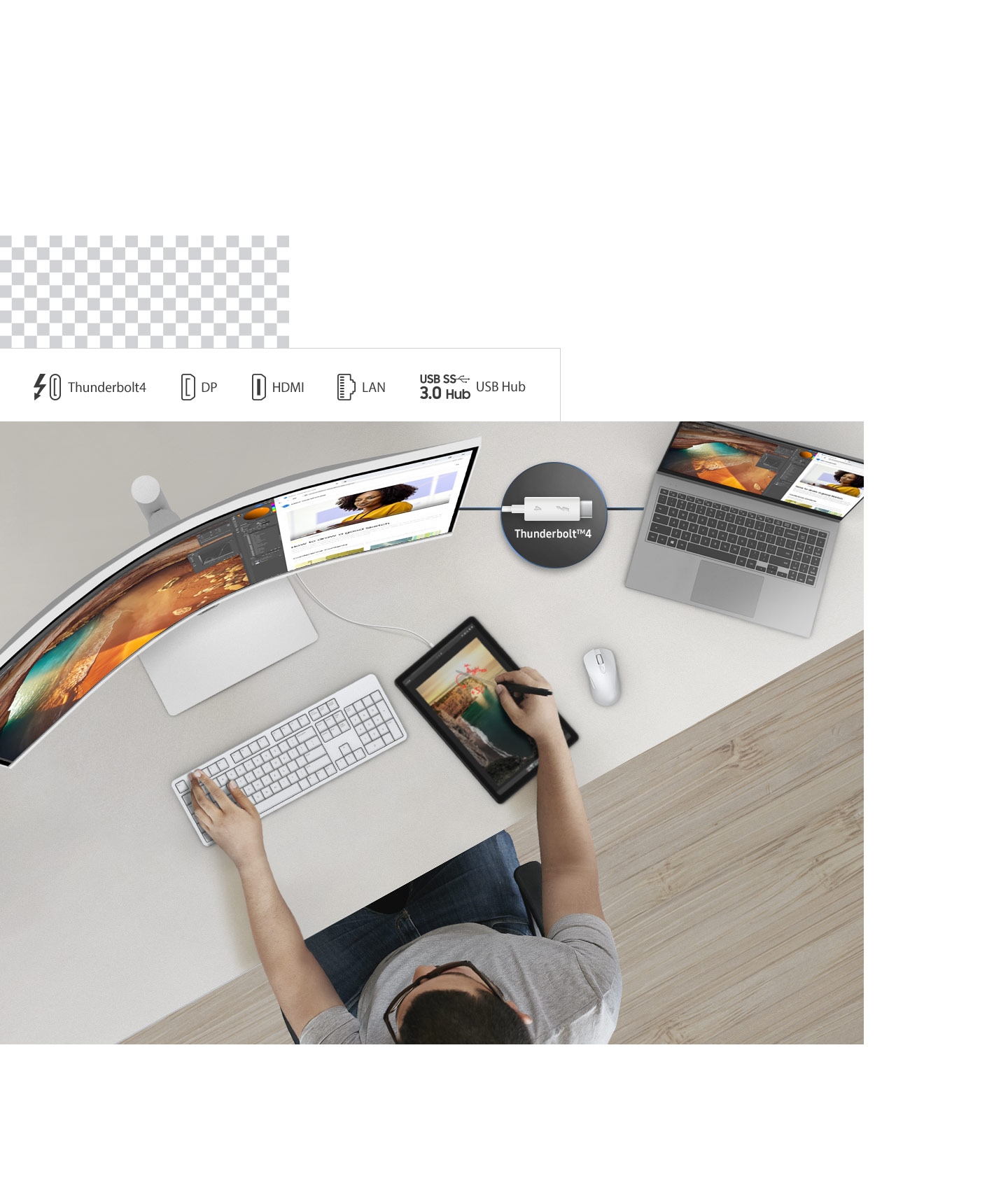 Samsung LS34C650TAUXEN - Moniteur Flat 34" Résolution QHD Serie 6 Blanc Ratio 21:9 Display Port, HDMI, USB, Ethernet Port, Thunderbolt