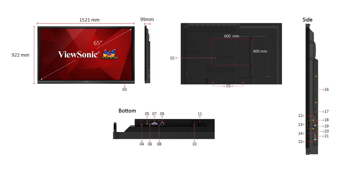 Viewsonic IFP6550 - Ecran Interactif 65" TFT LCD avec Rétroéclairage DLED Ultra HD 4K Tactile 20 Points
