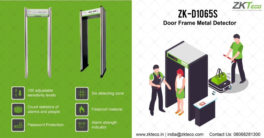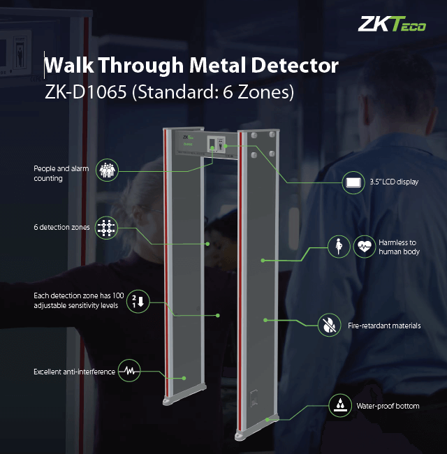 ZKTeco ZK-D1065S - Détecteur de Métaux à Passage Direct avec 6 Zones et 100 Niveaux de Sensibilité Affichage LED Compteur pour alarme et personnes Son synchrone et alarme LED