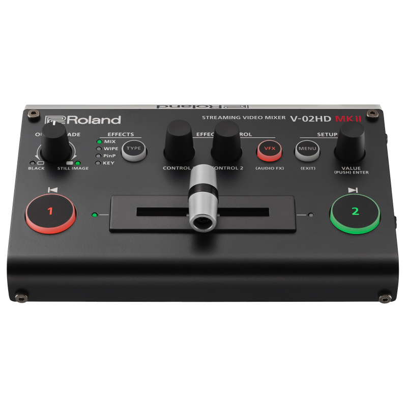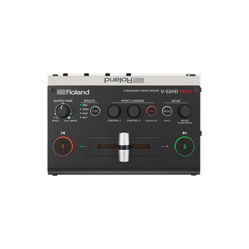Améliorez vos diffusions en streamingLaissez tomber votre webcam et améliorez vos diffusions en direct grâce au Mélangeur de streaming V-02HD MKII. Compact, économique et facile d'utilisation, cet appareil au format Desktop vous permet de connecter et commuter deux caméras HDMI haute qualité, et d'envoyer directement les images sur votre plateforme de streaming favorite via USB-C. Vous pouvez également mixer les sources audio connectées aux entrées dédiées ou par HDMI, et appliquer des effets vidéos et des transitions. Grâce au V-02HD MKII, vous disposez de l'interface dont vous avez besoin pour améliorer la qualité de vos productions vidéo diffusées en direct.Le V-02HD MKII constitue la solution de streaming à deux caméras la plus simple au monde. Grâce à sa conception intuitive, ses larges boutons et son curseur T-Bar, il est incroyablement facile à manipuler, même si vous n'avez aucune expérience en la matière.Trois étapes suffisent pour lancer une diffusion :1. Connectez jusqu'à deux sources en HDMI : caméras, ordinateurs, terminaux mobiles, ou consoles de jeu.2. Connectez la sortie USB-C à votre ordinateur.3. Lancez votre logiciel de streaming et choisissez le V-02HD MKII en tant que caméra source.Compatible avec toutes les plateformesLe V-02HD MKII se connecte à l'ordinateur que vous utilisez habituellement pour le streaming, et au public qui vous suit régulièrement. Il est instantanément reconnu en tant que caméra source lorsque vous le connectez par USB, prêt à interagir avec Facebook, YouTube, Twitch et Zoom. Il s'intègre également sans problème dans OBS Studio, StreamYard, et Restream pour des utilisations plus professionnelles. La qualité maximale de diffusion est de 1080p/60 FPS, et il est possible d'envoyer deux flux supplémentaires à des appareils HDMI externes via les sorties Program et Preview, si nécessaire.Une installation sans stressLorsque vous utilisez le V-02HD MKII, tout fonctionne à merveille. Branchez vos deux sources HDMI et laissez la technologie évoluée Roland s'occuper des détails. Vous ne rencontrerez plus de conflits de pilotes, de crashs logiciel, et autres problèmes de fonctionnement qui surviennent d'ordinaire avec de multiples webcams USB et des adaptateurs d'encodage HDMI vers USB.Des caméras HDMI gagnantesDes Talk Shows aux démonstrations en direct, en passant par les performances artistiques, les caméras à sortie HDMI améliorent la qualité d'image de vos programmes et attirent plus de spectateurs. Leurs objectifs sont bien meilleurs que n'importe quelle webcam, et sont souvent équipés d'un zoom permettant un cadrage optimal. Vous pouvez connecter au V-02HD MKII de nombreux types de caméras. Quelle que soit la solution choisie, assurez-vous qu'elle dispose d'une sortie HDMI propre, sans aucune information superposée.Bien—Un smartphone ou une tablette avec adaptateur HDMI constitue une bonne option, compacte et facile à utiliser en toute occasion.Mieux—Une caméra Point-and-shoot, une ActionCam, ou un caméscope, avec un zoom et un contrôle de l'exposition et du focus vous permettront d'obtenir de meilleures images.Idéal—Une caméra DSLR ou sans miroir constitue la solution ultime, procurant une qualité d'image cinéma, avec objectifs interchangeables et de meilleures performances en conditions de faible lumière.Améliorez aussi votre sonLe V-02HD MKII intègre également une table de mixage numérique 10 canaux proposant la légendaire qualité de son Roland. Vous disposez de deux entrées audio en minijack 3,5 mm, compatibles avec les micros, y compris les micros cravates qui nécessitent une alimentation par le connecteur, ou les sorties stéréo d'un smartphone, d'une table de mixage ou autre appareil. Les flux audio des sources HDMI peuvent également être mixés, ce qui inclut les micros de vos caméras.Commutez au piedSi vous procédez à une démonstration ou intervenez dans vos programmes, vos mains seront probablement occupées à diverses tâches. Le V-02HD MKII vous permet le contrôle au pied à l'aide de deux pédales BOSS en option, afin de gérer votre diffusion sans interrompre votre présentation. Utilisez-les pour changer d'angle de caméra, passer sur une image fixe, lancer une transition, effacer une fenêtre PinP, ou autres fonctions.Allez plus loin grâce aux fonctions Pro A/VDès que vous le sortez de son carton, le V-02HD MKII vous procure les contrôles dont vous avez besoin pour commuter des caméras et régler vos sources audio et vidéo en direct. Mais si vous souhaitez aller plus loin, vous pouvez explorer tout un monde de fonctions évoluées. Connecter un écran HDMI à la sortie Preview vous fournit un affichage de contrôle pour régler de nombreuses fonctions du V-02HD MKII. Et grâce à notre appli de contrôle pour iPad, macOS et Windows, vous pourrez contrôler votre V-02HD MKII à l'aide d'une interface graphique intuitive.Ajout de caméras sans fil grâce à AeroCaster SwitcherL'achat d'un V-02HD MKII vous permet d'accéder gratuitement à l'appli Aerocaster Switcher Roland pour iPad, une puissante solution pour augmenter le nombre de vos caméras sans vous emmêler dans de nombreux câbles. Grâce à cette appli unique, vous pouvez contrôler et commuter sans fil jusqu'à cinq caméras de smartphone ou de tablette, puis envoyer les images au V-02HD MKII ou autre mélangeur Roland compatible doté d'une entrée HDMI.Appli de contrôle V-02HD MKII Remote pour iPadL'appli de contrôle à distance V-02HD MKII Remote transforme votre iPad en interface tactile efficace pour votre V-02HD MKII. Lancez les commutations essentielles, mixez l'audio à l'aide des curseurs virtuels, modifiez les réglages et les paramètres des effets, et créez jusqu'à huit Scenes pour procéder à des changements globaux rapides. - Plus d'images (3)