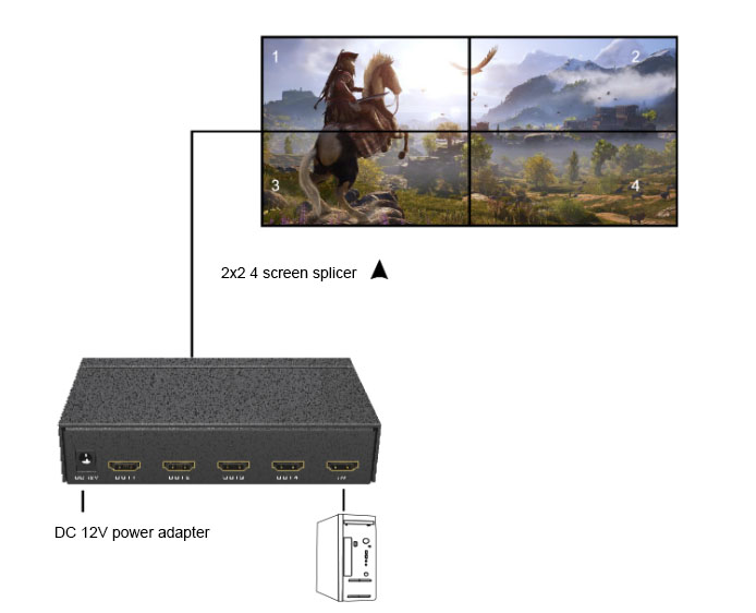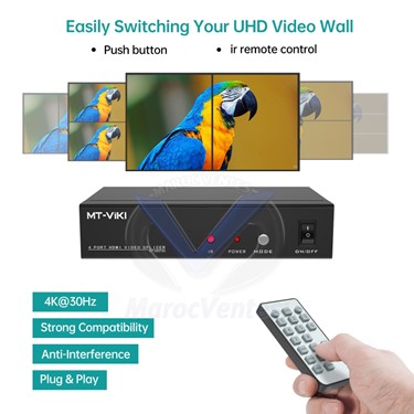 Video Wall Contrôleur de Mur Vidéo HDMI 2×2 4K 30Hz avec Télécommande IR