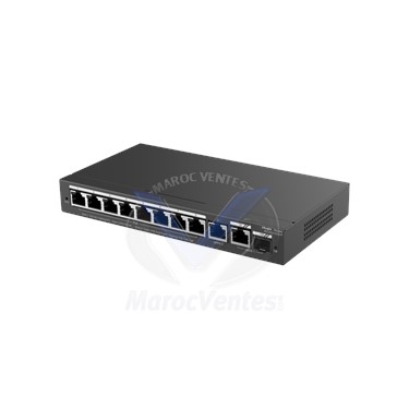 Type AdministrableInterfaces PoE+ 8× 10/100/1000 Mb/s + 1× SFPAlimentation PoE Oui (802.3af/at), budget 120 WNombre de ports 1 – 8 PoE+, 1 uplink comboAdministrable Oui (Web/Cloud)PoE OuiCaractéristiques Techniques