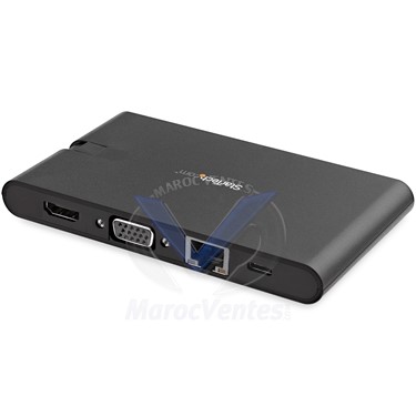 Pour une utilisation mobile, l'adaptateur USB-C est alimenté par bus et léger, avec un câble USB-C enveloppant.Le DKT30CHVSCPD bénéficie de la garantie StarTech.com de 3 ans et de l'assistance technique à vie gratuite.MINI STATION D'ACCUEIL PORTABLE USB-C 8-EN-1 : Élimine les tracas liés au transport de plusieurs adaptateurs avec vidéo HDMI 4K 30Hz ou VGA 1080p, 3x USB-A 5Gbps, emplacement SD, emplacement microSD, 1x Gigabit EthernetFlexibilité d'alimentation : la station d'accueil de voyage est alimentée par bus USB et prend en charge jusqu'à 100 W Power Delivery 3.0 Passthrough ; 15 W réservés pour la station d'accueil et jusqu'à 85 W pour le chargement d'un ordinateur portable à l'aide de votre adaptateur secteur USB-CACCÈS SIMULTANÉ SD ET MICRO SD : L'adaptateur multiport USB-C fournit à la fois un lecteur de carte SD/SDHC/SDXC et un lecteur de carte MicroSD pour un stockage ou une sauvegarde supplémentaire des données, et permet d'accéder aux deux simultanémentPorts de charge rapide : station d'accueil portable avec 3 ports USB 3.0 Type-A prenant en charge la charge rapide BC 1.2 1,5 A pour charger les tablettes ou les smartphones sur l'un des ports, avec adaptateur secteur USB-C et ordinateur portable connecté.COMPATIBILITÉ LARGE DES APPAREILS ET DU SYSTÈME D'EXPLOITATION : le dongle adaptateur tout-en-un fonctionne avec les appareils HP, Dell, Lenovo, MacBook, iPad Pro, Surface, Chromebooks et Samsung Galaxy sous Windows, macOS, Chrome OS, iPadOS et Android.Caractéristiques Techniques
