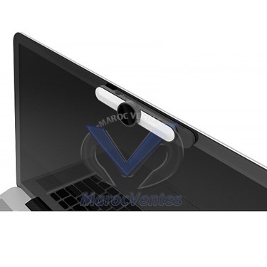 Un support de micro-ventouse facilite la fixation d'Evoko Groupie sur la caméra existante sur les ordinateurs, les tablettes et les smartphones.