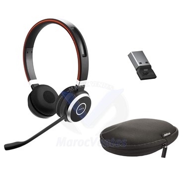 Le casque Jabra Evolve 65 dispose d’une perche micro permettant d’annuler les bruits ambiants et de se concentrer sur la voix lors d'un appel afin d’offrir une qualité d’audio supérieure et que l’interlocuteur puisse entendre clairement l’utilisateur du casque. Ainsi, il est idéal pour une utilisation professionnelle, notamment pour les centres d’appels. Il est très léger, idéal à porter durant l’entièreté de votre journée de travail.Le casque se charge facilement à l’aide d’un câble USB ou de sa base de chargement (non fournie).Il est équipé de deux oreillettes en similicuir confortables et dispose d’un témoin lumineux qui vous permet de signaler à vos collègues que vous êtes en ligne afin d’éviter d’être dérangé.Le micro casque Jabra Evolve 65 Stéréo sans fil est optimisé pour Microsoft Teams donc il dispose d’un bouton sur l’écouteur permettant de lancer les visioconférences sur Microsoft Teams. Il ne nécessite pas d’installation ni paramétrage avec ce logiciel (installation plug and play immédiate et compatibilité avec l'ensemble des softphones du marché).Micro-casque arceau sans fil, stéréoConnexion Bluetooth (ou USB avec le dongle)Écouteurs avec réduction passive du bruitMicrophone avec annulation des bruits de fondBluetooth avec portée sans fil de 30m maxiAutonomie : 7h en conversation, 15 jours en veilleTémoin lumineux d’appel : ne soyez plus dérangé lors de vos appelsCommandes intégrées : volume, muet, prise d'appel, play/pause.