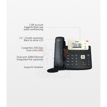 Téléphone IP avec écran et prise casque, 2 comptes SIPLe téléphone Yealink T21P est un poste professionnel capable de gérer 2 comptes SIP. Avec ses fonctions d'auto-provisionnement, d'auto-configuration et d'auto-actualisation, il convient au entreprises recherchant un téléphone facilement manageable.Il s'adapte à votre environnementAvec le Yealink T21P, vous choisissez entre une alimentation PoE (via câble Ethernet) et une alimentation électrique classique (via bloc secteur - non inclus).Gestion évoluée des appelsLe Yealink T21P offre les fonctionnalités de téléphonie suivante: identification du noms et du numéros de l'appelant, transfert d'appel, conférence à 2, communication interne...Ultra professionnelEquipé de la puce TI TITAN, d'un écran LCD 2 lignes, d'un switch Ethernet 2 ports RJ45 10/100 M et d'un mains libres full duplex, le Yealink T21P est idéal pour une utilisation intensive en entreprise.Compatible avec les environnements SIP:* Alcatel-Lucent* Aastra* Avaya* 2CX* Asterisk* SipleoCaractéristiques
