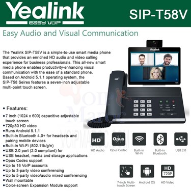 Enfin, le Yealink T58V prend en charge 16 comptes SIP et dispose de 8 touches de fonction. La caméra HD CAM50 vous premettra quant à elle, de converser en temps réel.