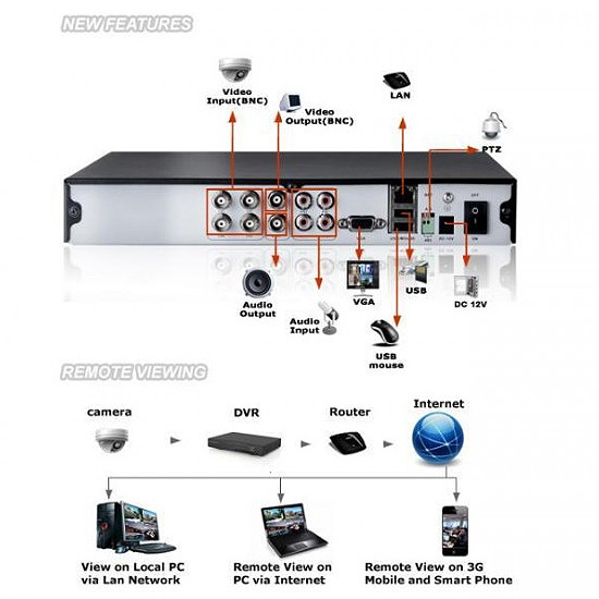 • DVR 4 CH Video Compression H.264 VT-DVR9104V