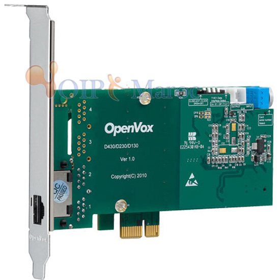 OpenVox D130E est maintenant le leader seul port T1/E1/J1 carte PCI-E dans l'industrie open source. Il prend en charge jusqu'à 32 canaux en mode E1 ou 24 canaux dans T1/J1 modes.