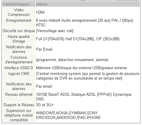Caractéristiques techniques: