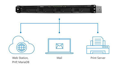pouvez héberger jusqu'à 30 sites web avec Web Station, protéger les environnements de bureau avec