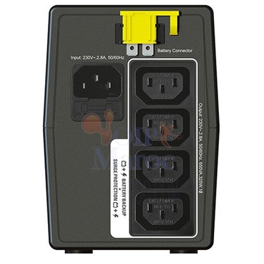 Capacité de l'alimentation de sortie 325 Watts / 650 VA Tension nominale de sortie 230V Topology Line interactive Type de forme de l'onde Sinusoïde approchée Branchement en sortie (4) IEC 320 C13 (Batteries de secours) Voltage nominal en entrée 230V Fréquence d'entrée 50 Hz Type de connexion en entrée IEC-320 C14 Longueur du cordon 1.22 mètres Intensité maximale du courant d’entrée 5A Puissance du disjoncteur d'entrée 5 A Type de batterie Batterie au plomb scellée sans entretien avec électrolyte suspendu : étanche Batteries pré-installées 1 Batterie de remplacement APCRBC110 Durée de recharge type 4 heure(s) Interface utilisateur Voyant d'affichage de l'état Sur ligne ou Sur batterie Alarme audible Alarme lors du passage en mode batterie ; alarme de niveau minimal batterie distincte ; alarme continue en cas de surcharge LED Oui Poids en kg 4 kg Dimensions (l x p x h) en mm 101 x 300 x 142 mm - Plus d'images (1)