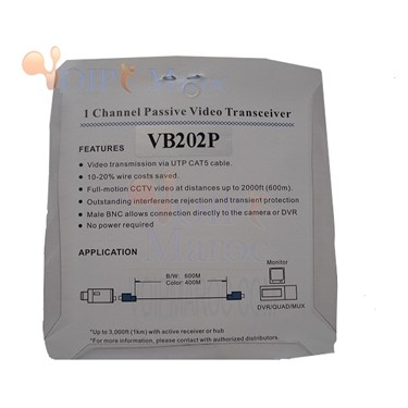 Transmission Vidéo via UTP CAT5 cable10-20% du coût de fil économiséPleine-motion CCTV vidéo à des distances jusqu'à 400mRejet d'interference et protection transitoire exceptionnelsMale BNC permet la connection directe à la caméra ou DVRGamme transmission :0-400mCaractéristiques techniques: