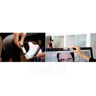 Un support de micro-ventouse facilite la fixation d'Evoko Groupie sur la caméra existante sur les ordinateurs, les tablettes et les smartphones.