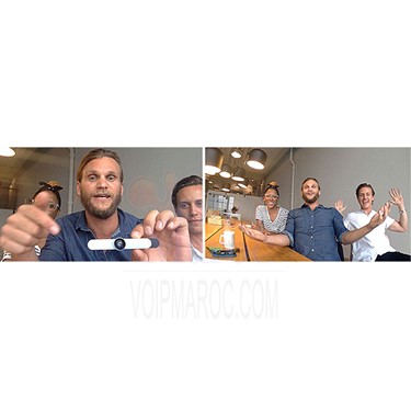 Evoko Groupie est une lentille d'éclairage grand angle portable que vous pouvez connecter à n'importe quel appareil pour faciliter les appels de vidéo conférence.