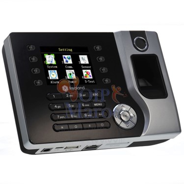 Specifications CPU ARM926EJ-S processor, 32bit RISC Kernel, working frequency: 200MHz Display 2.8 inch TFT color screen Fingerprint Sensor 500DPI (optical sensor) Max User 2,000 Fingerprint Capacity 2,000 Card/ PIN Capacity 2,000 Transaction Capacity 100,000 Language Chinese, English, Spanish, Korean… Communication TCP/IP; USB Flash Drive; USB Cable Proximity Card Standard for RFID Card(125KHz); optional for MIFARE Card (13.56MHz) Bell Built-in Timing Bell (Scheduled-bell) Power Supply DC 12V/1A Operation Environment Operating Temp: 0 ℃ ~ 45℃, Humidity: 20% ~ 80% Dimension 164(L)*110(W)*42(H)mm