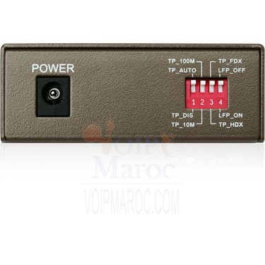 Type de câblage : Ethernet 100Base-FX, Ethernet 100Base-TX, Ethernet 10Base-TNormes conformes : IEEE 802.3, IEEE 802.3u, IEEE 802.3xTechnologie de connectivité : filaireProtocole de liaison de données : Ethernet, Fast EthernetTaux de transfert de données : 100 MbpsCaractéristiques : Auto-négociation, Auto-uplink (MDI / MDI-X automatique), Contrôle de flux, Mode duplex intégral, Mode semi-duplexFacteur de forme : externeType d'interface : RJ-45, mode SC uniqueDistance de transfert maximum : 20 kmLongueur d'onde optique : 1310 nmIndicateurs d'état : état de collision, lien / activité, mode duplex de port, alimentationType : Convertisseur de média en fibreDispositif d'alimentation: