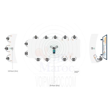 - 2 microphones sans fil CPW90 inclus- Écran couleur tactile 5" 720x1280- Android 5.1- Bluetooth 4.0- WiFi 802.11.b / g / n / ac- Menus interactifs à l'écran- HD Audio (haute définition)- Haut-parleur duplex intégral- Acquisition vocale jusqu'à 6 mètres et 360 °- Annulation des échos- Conférence à 5- Prend en charge l'enregistrement USB- Codec de voix : G722, G722.1C, G726, G729, G723, iLBC, Opus- Technologie anti-bruit Yealink- 1 compte SIP- Attente, muet, DND, enregistrement, hotline- Répétition du dernier numéro, appel en attente, appel d'urgence- Réglage manuel ou automatique de la date- Connecteur jack 3,5 mm pour haut-parleur externe ou amplificateur- Jusqu'à 1000 entrées / contacts- Journal d'appels- Importation d'annuaire- Portes et connexions- 1 RJ45 LAN 10/100- WiFi 2.4 - 5 GHz- Bluetooth 4.0- Port LAN Power over Ethernet 802.3af classe 4- 2 ports de microphone avec fil- 2 ports USB 2.0- 1 prise de sortie audio 3,5 mm- 1 port USB 2.0 Micro-B- 1 emplacement de sécurité- Dimensions : 338 x 338 x 74 mm - Plus d'images (7)
